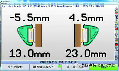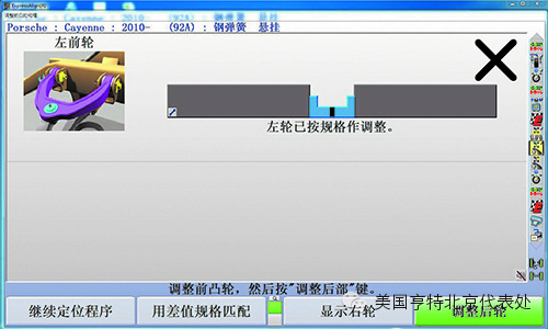 3. 采用“双凸”螺栓调整的越野车型,CAMM ®首先确定哪个凸轮或槽(前或后)应该进行调整。当不能进行调整或者调整不符合标准时,会出现错误提示“X”(图7),