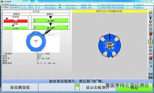 我方专家对车辆定位工作中遇到的几种比较难以解决的兰博坚尼蝙蝠系列车型大梁加垫片调整、大众系列车型后轮定位数据调整、越野车系列“双凸”螺栓调整、做完四轮定位后行驶跑偏等问题与亨特技术人员进行交流。技术人员很快从系统中找到相应的车型及立体三维动画引导程序,并对疑难问题一一给予解决。